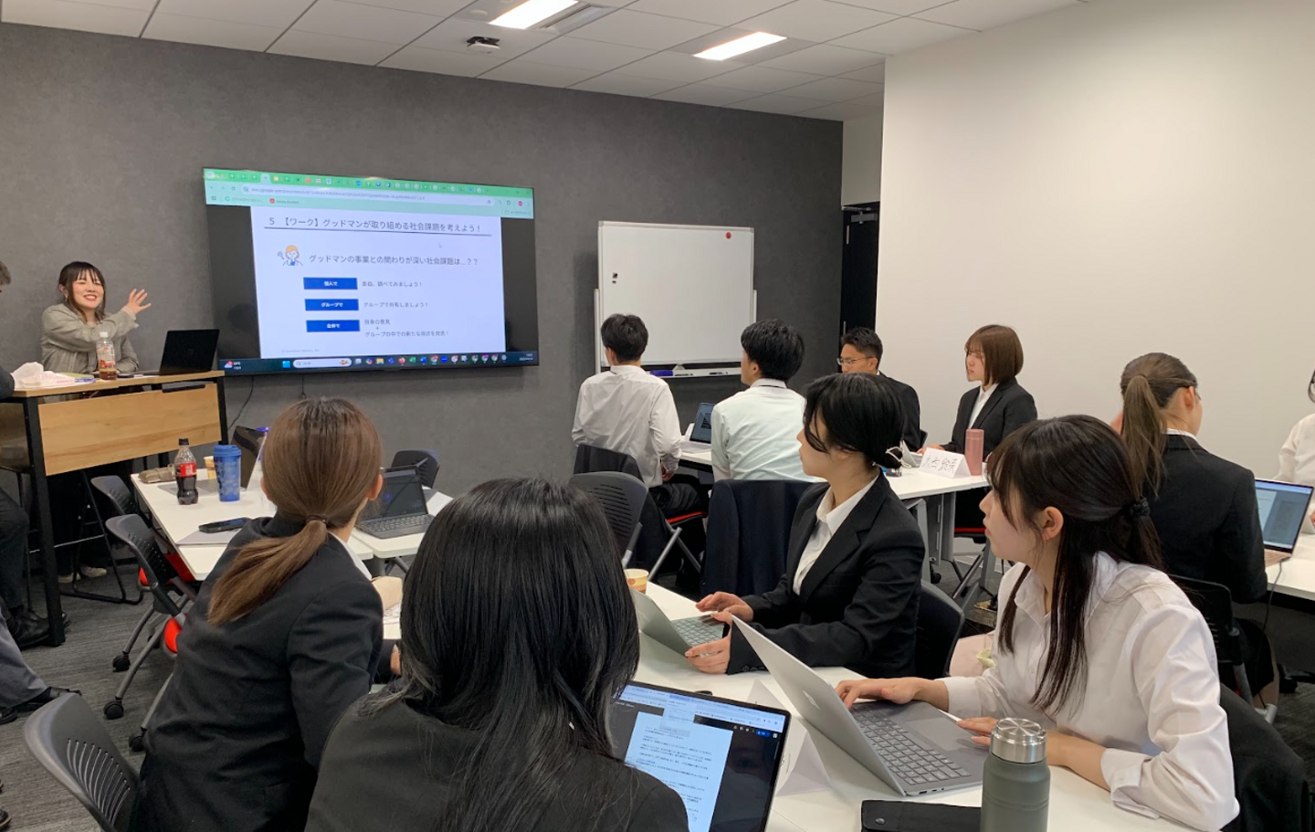 研修の中では『"今後グッドマンサービスが取り組める" または "グッドマンサービスと関係が深い"社会課題とは?』を新卒社員みんなで考えて発表するワークも行いました。