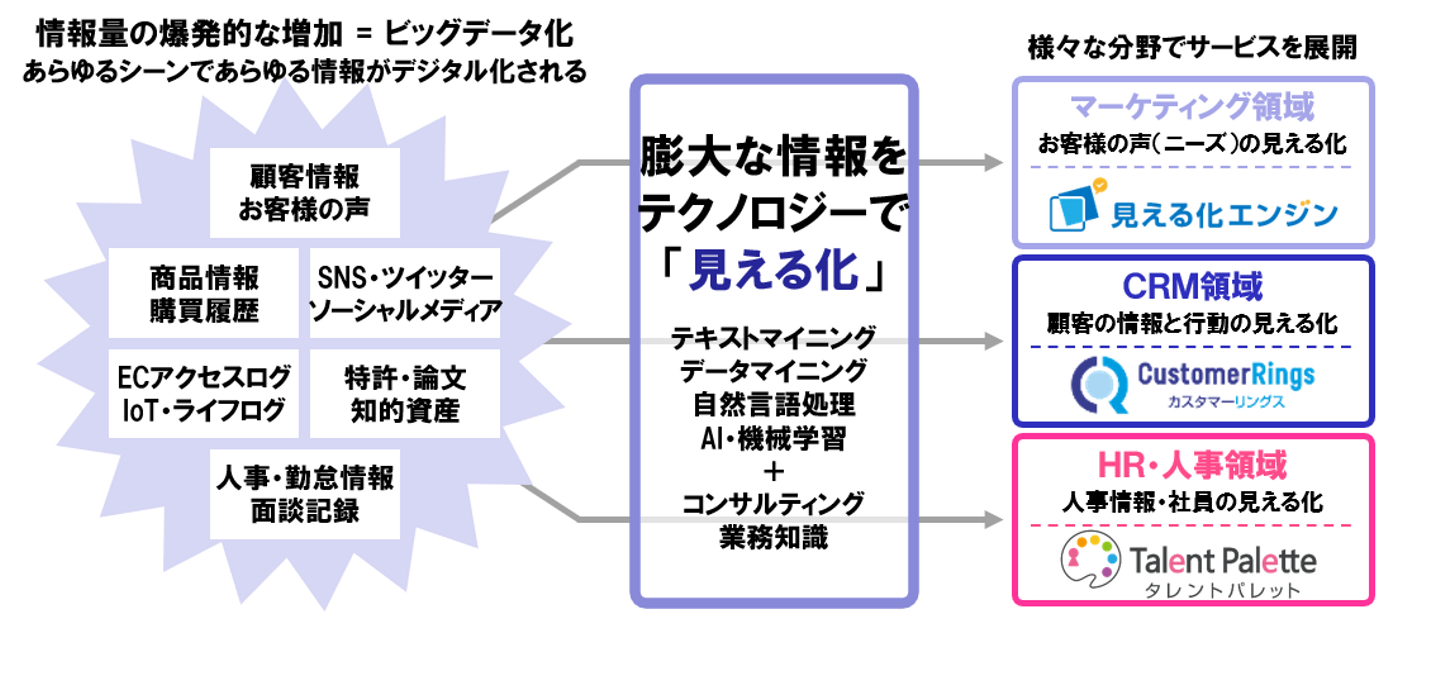 PACは異なる3領域で事業展開していますが、一貫して【膨大な情報をテクノロジーで「見える化」する】という軸があります!