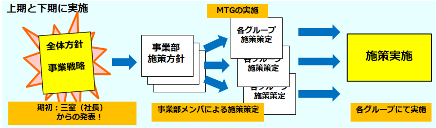 その後に社員一人一人がその半期における各事業の方向性の策定MTGに参加します!