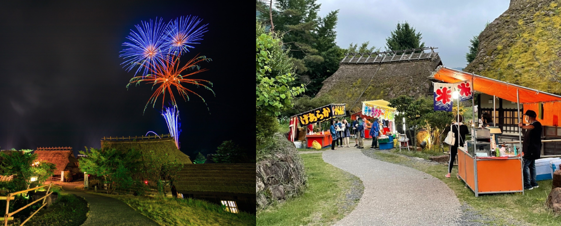 村に屋台が並び、さらに打ち上げ花火が上がりもうその光景はお祭りそのもの!!