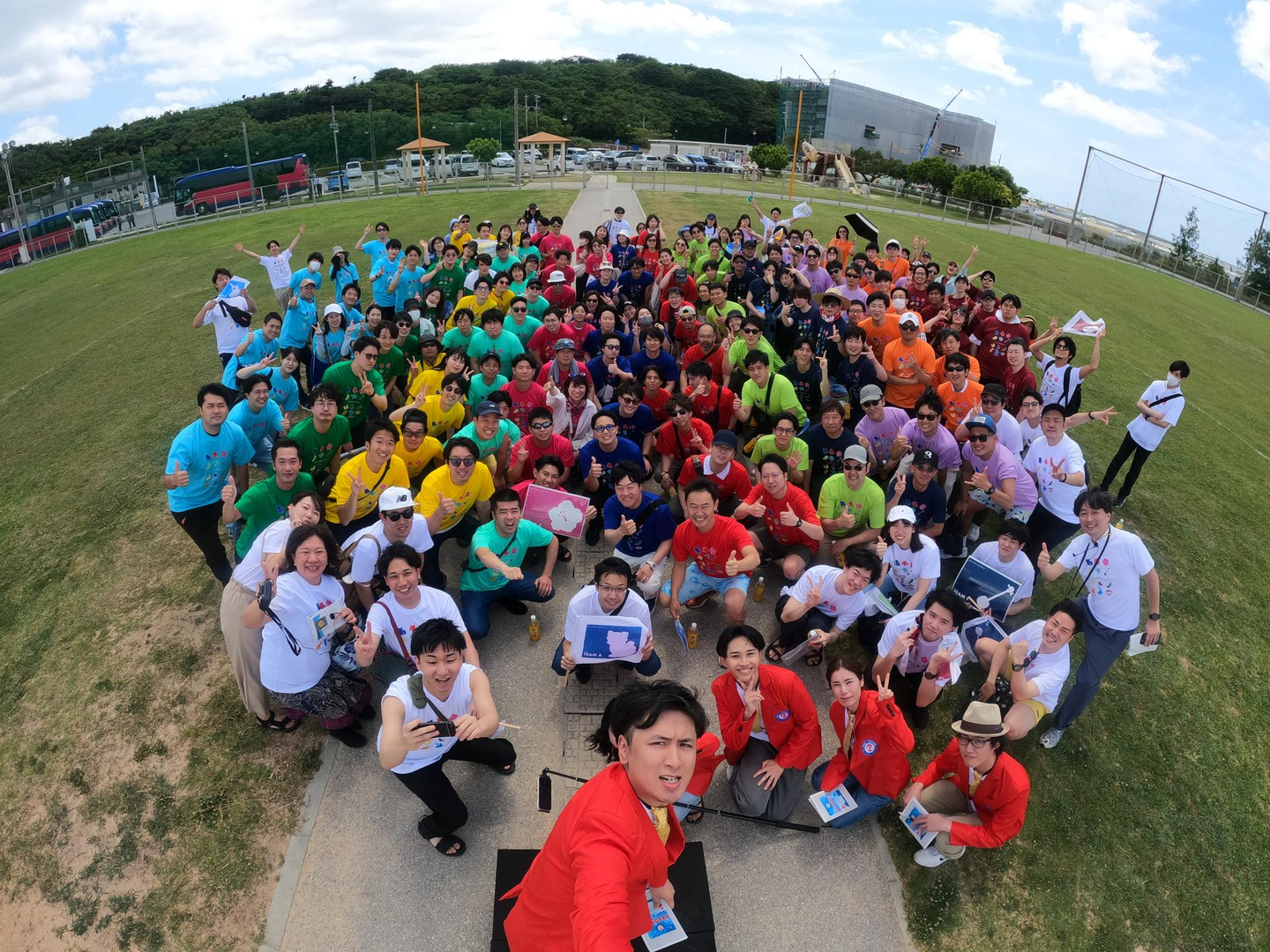 沖縄到着後、瀬長島に向かい、それぞれのチームに突然配られた特製Tシャツを着てとある場所につきました。