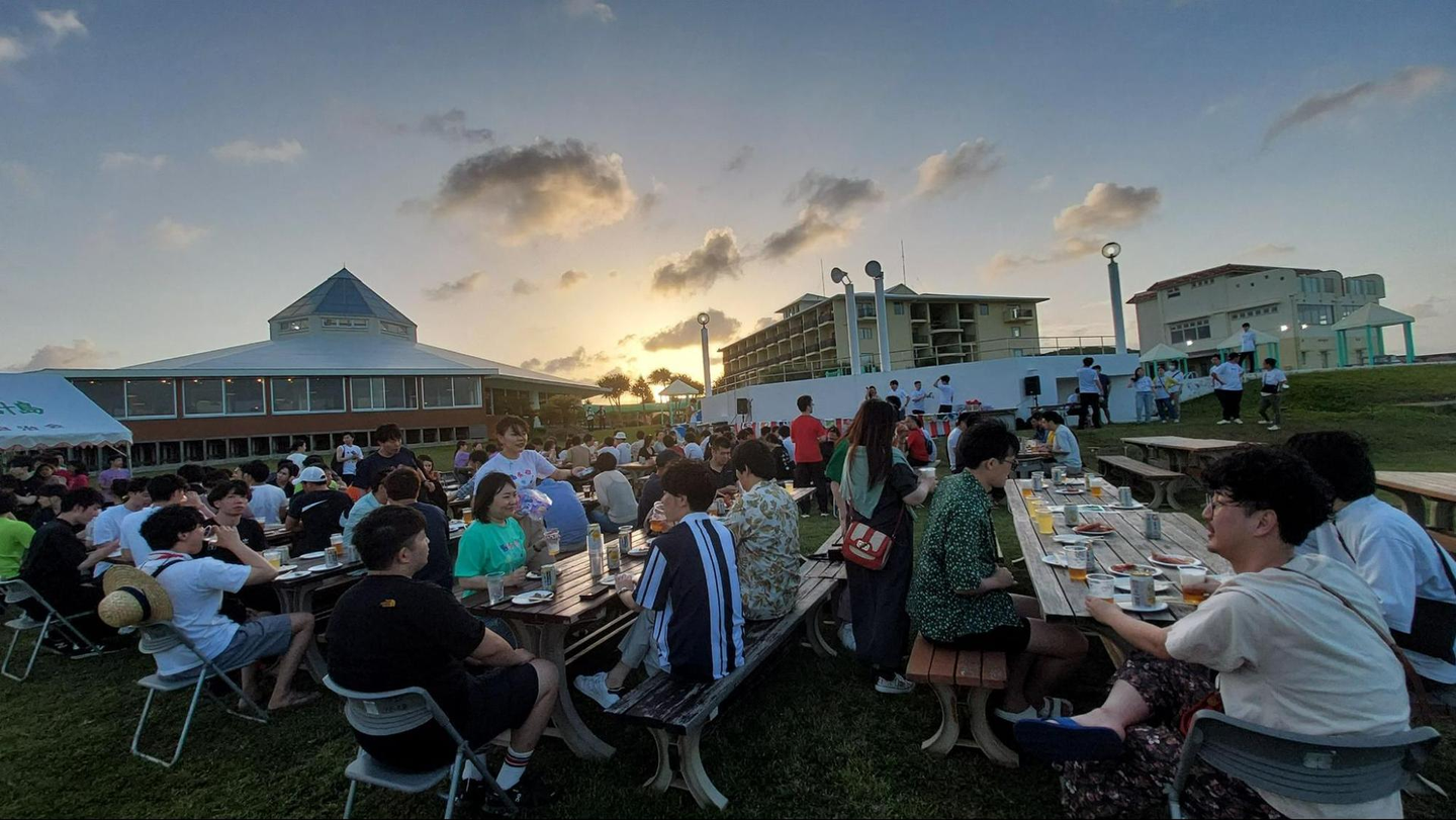 ホテルの皆さんが、海の見える広場でバーベキューを用意してくださいました!
