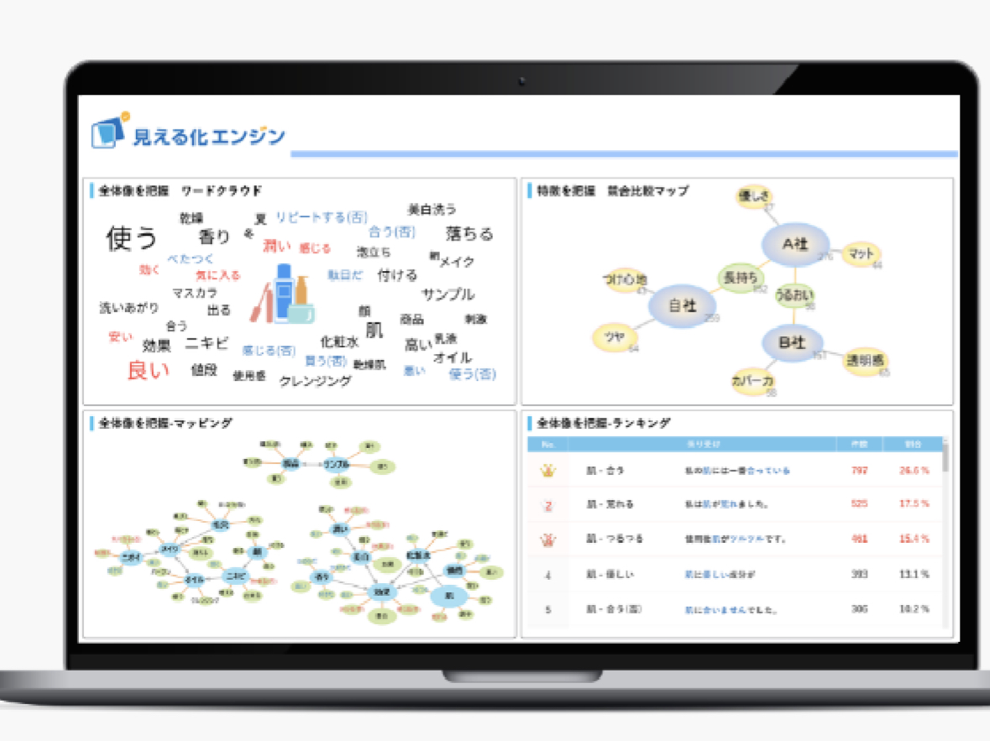 見える化エンジンは、顧客の声を活用し、顧客体験の可視化を支えるSaaS型テキストマイニングツール。