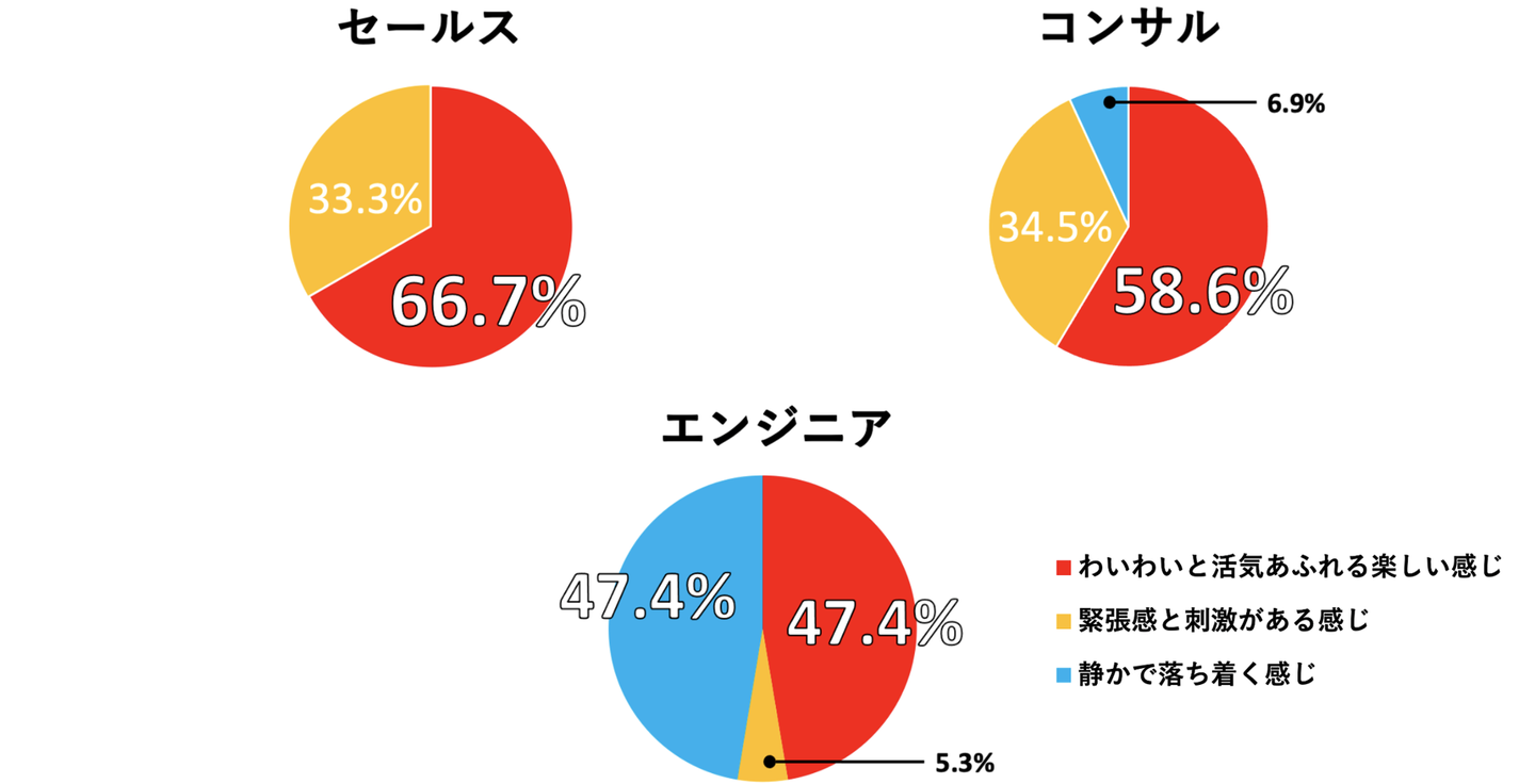 どの職種も「わいわいと活気あふれる楽しい感じ」が1番多い投票となりました!