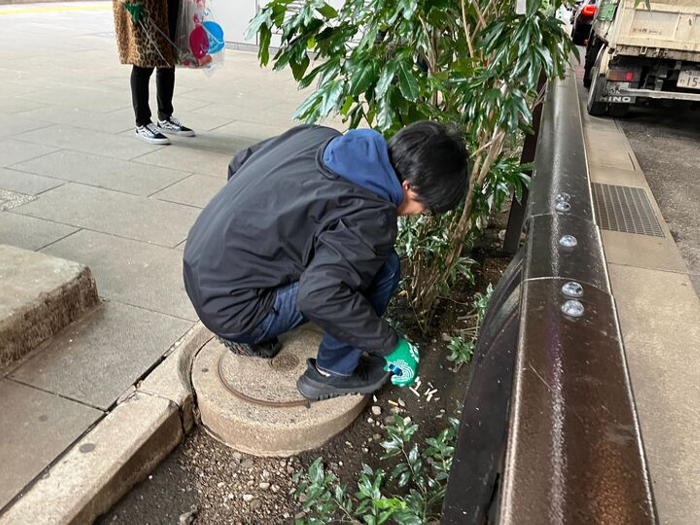 割り当てられた地域の路上に落ちている吸い殻やガムなどのゴミを除去を担当しました。