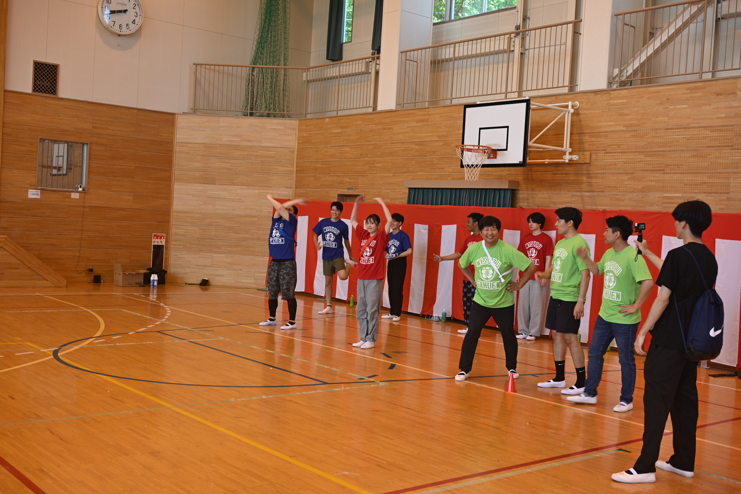 3人で交代しながら走るのですが、「選手交代」や「ととのう(1回休み)」の特別カードを獲得するために残りのメンバーでフリースローやドリブルチャレンジを行いました。