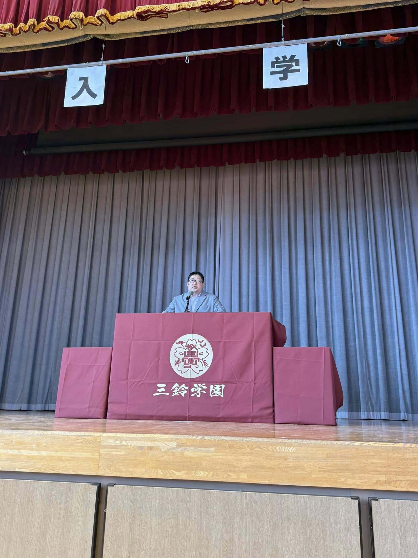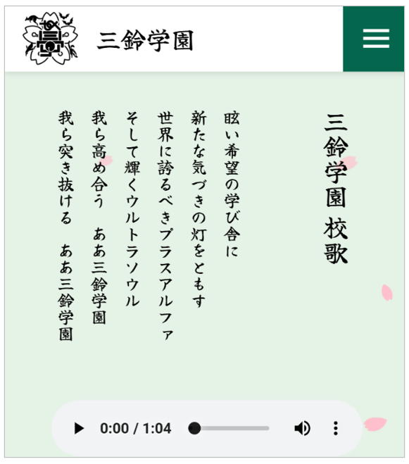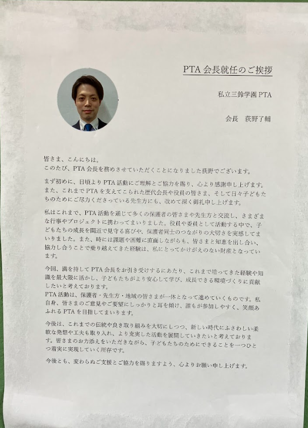 外川理事長、わにぶち絶校長(わにぶちぜっこうちょう)、PTA会長の祝辞のあと、トラベニア(旅行委員)でもありPACが誇るとある大物ミュージシャンが作詞・作曲をした三鈴学園校歌を斉唱しました。