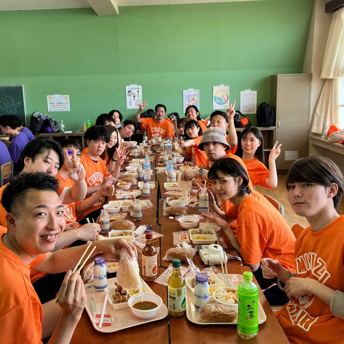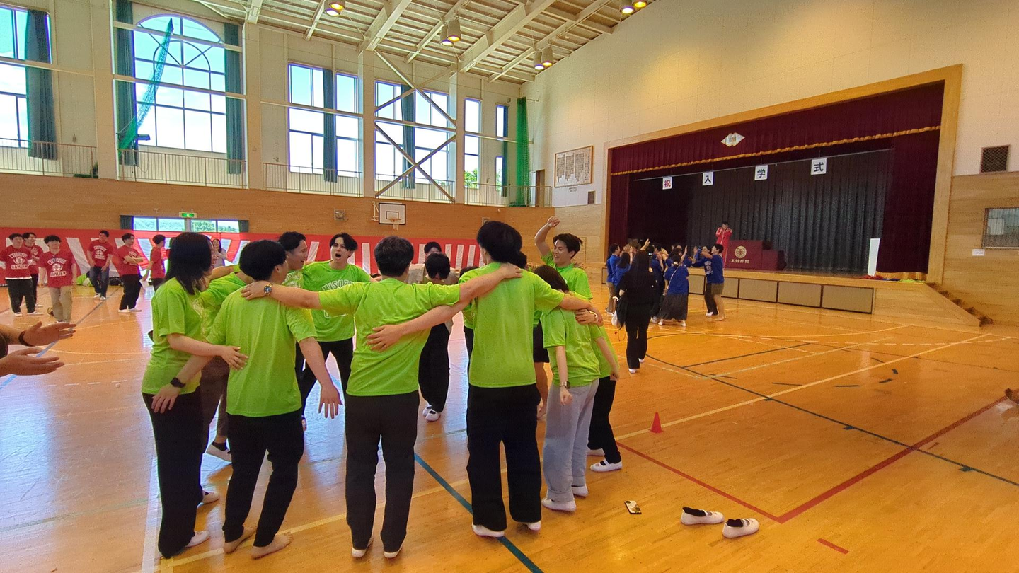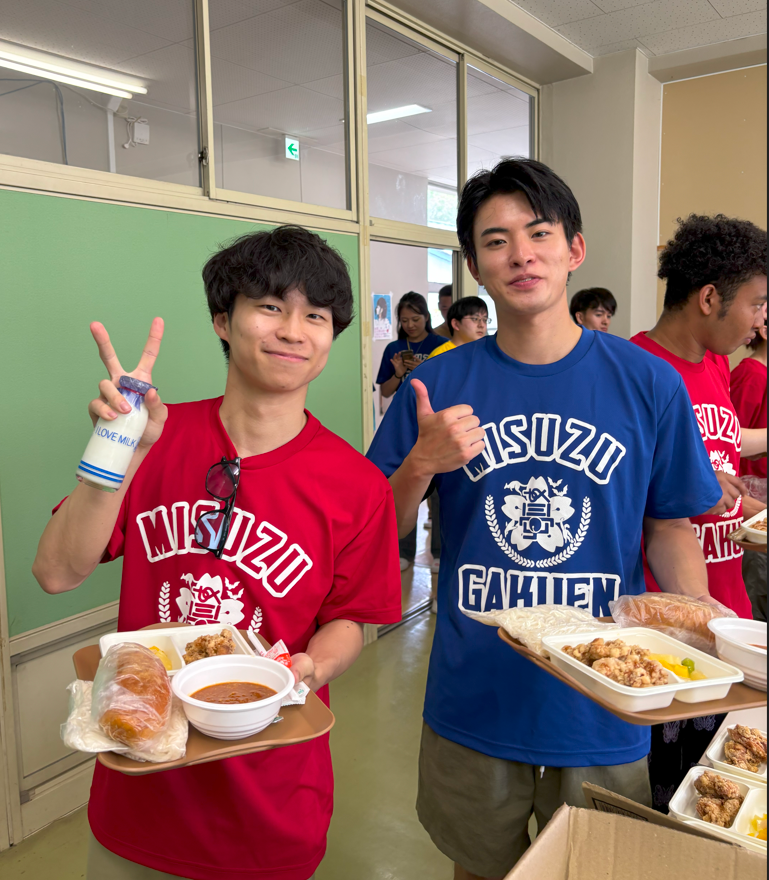 体育、音楽、理科、必修授業の4科目があり、途中にたのしい給食を挟みながら力を合わせて授業に取り組みます!