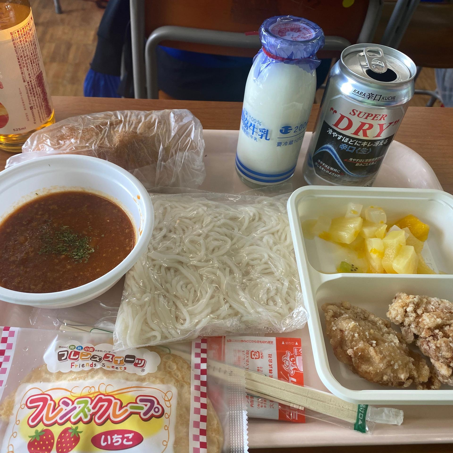 ▼待ちに待った「給食」!みんなで食べるとおいしいね😆