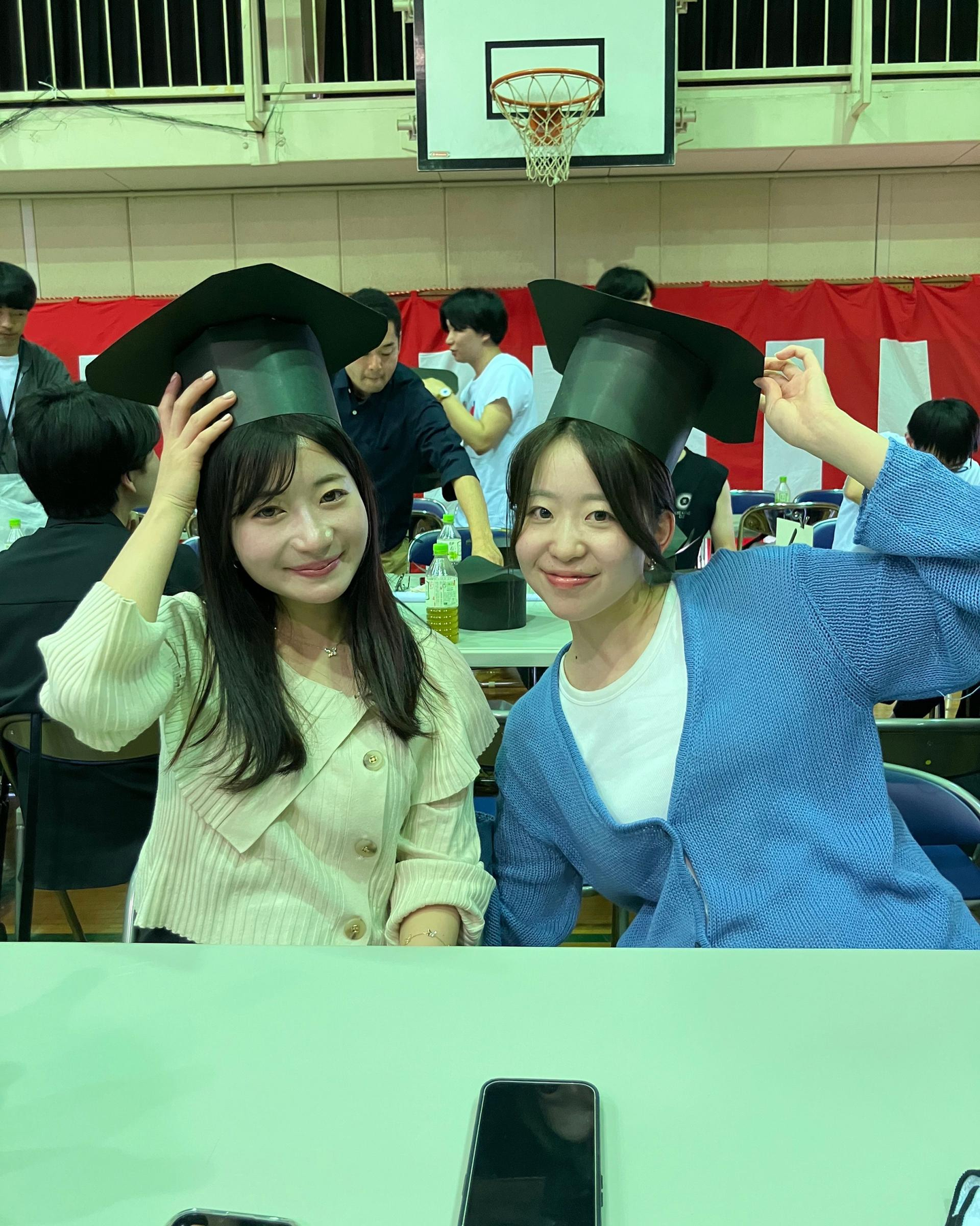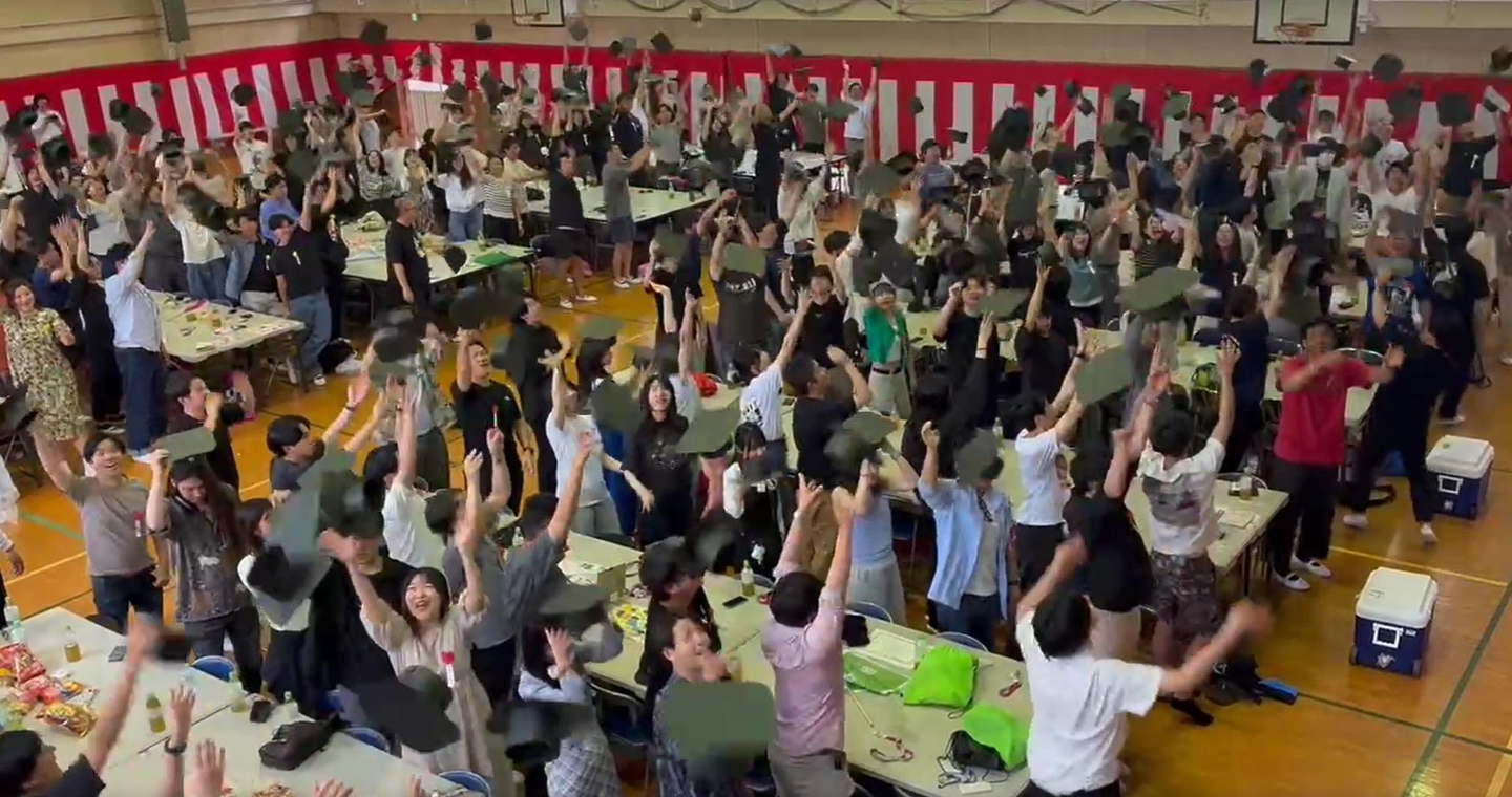 最後にみんなで角帽を宙に投げて、卒業式終了です!