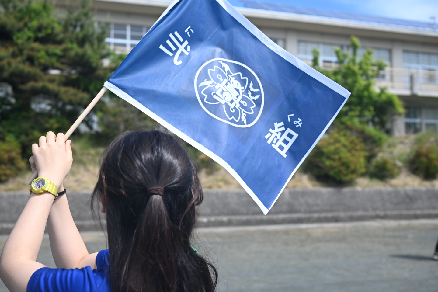 ・入学式体育館の演台は段ボールで作成。3日目卒業式の角帽の黒い画用紙はトラベニアがハサミでチョキチョキして下地を作った、チームの誘導旗もアイロンプリントで!