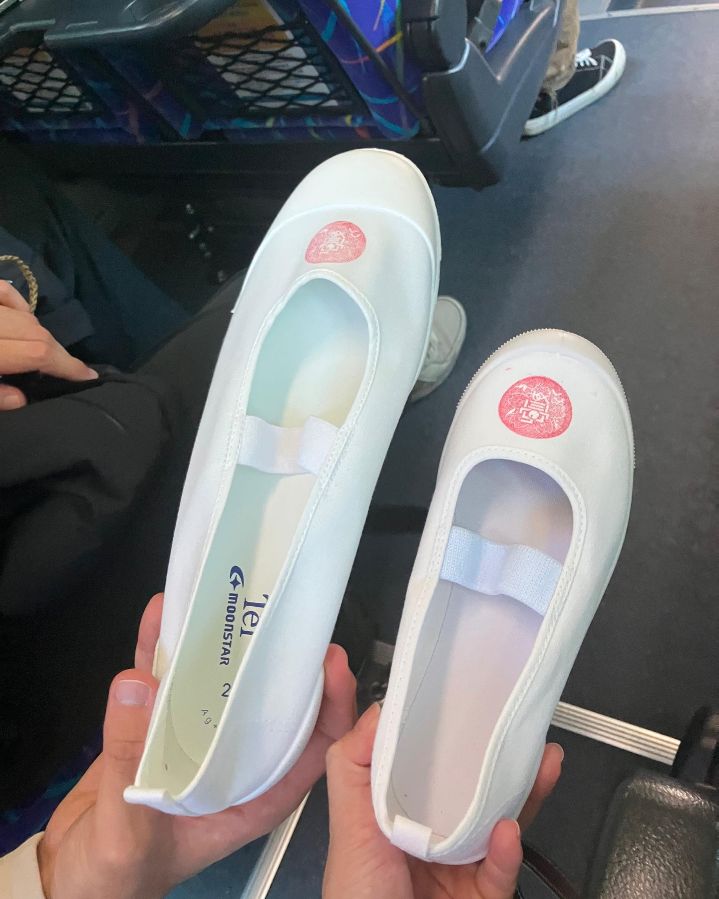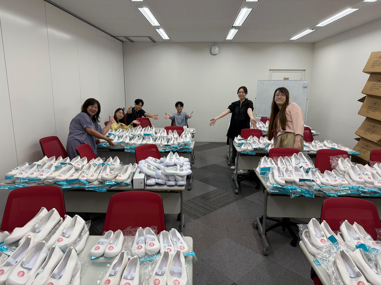 ▼準備時は入学シーズン前だったので、市場に上履きの在庫が少なく、一生懸命かき集め、トラベニアが一足ずつスタンプを押していった👟