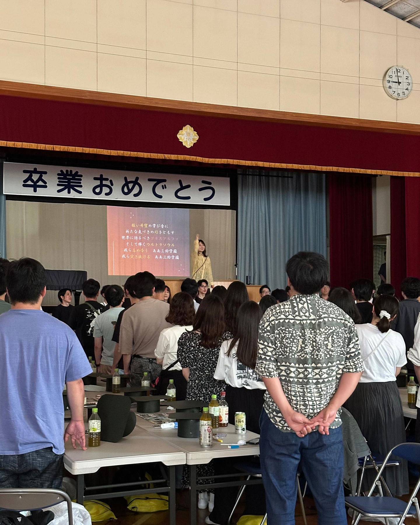 そして卒業式が始まりました!まずは旅行中に何度も耳にした三鈴学園の校歌を全員で斉唱します。前日に初めて聞いたのに、みんな自然と歌えるようになっていました(笑)