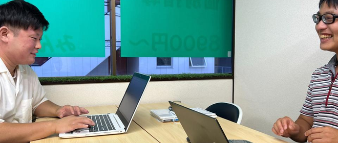 オフィスの床一面には人工芝が敷き詰められ、ジャズやボサノバのBGMが流れる創造的な空間です。既存の学習塾の常識にとらわれない環境は、業務の生産性向上にも貢献しています。