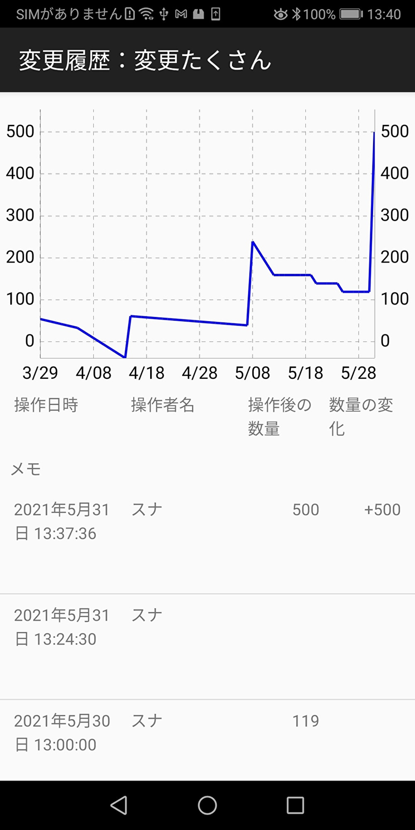 という訳でWebアプリとAndroidアプリにおいて、在庫数量をグラフ化してみました。