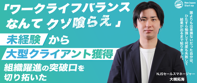 ー業界TOP 1%ー 結果主義で影響力と誇りを。 「この業界の方針を決めるのは私たちNJSだ。」 この力強い発言が出来る状態を目指して、 私たちは日々歩みを進めています。 「メンバー全員を“平凡な誰か”で終わらせない」 これは採用、組織作りにおいて大切にしている考えです。 先が見えない今の日本。 希望よりも不安が先行し、多くの人が妥協しながら生きている。 そんな中でもNJSで一花咲かせようと決めた覚悟に必ず報える会社でありたい。 そんな想いが込められています。 挑戦には、圧倒的成長という対価を。