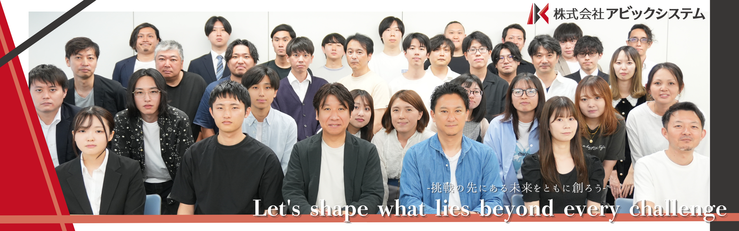 アビックシステムは、 『個人の市場価値が圧倒的に上がる会社』です。 生成AIの発達などにより、エンジニアは“ただものを作れる”だけではなく、ビジネスを理解し、モノづくりができることが重要視される世の中になりました。 つまり、『エンジニアにもビジネス力が求められる時代』になりつつあるということです。 当社は、個人の市場価値向上に向き合い、この先数十年というキャリアを、やりがいを持って働ける人材を輩出すべく尽力しております。 チームワークよく、圧倒的な成長をしたい皆様、応募お待ちしております