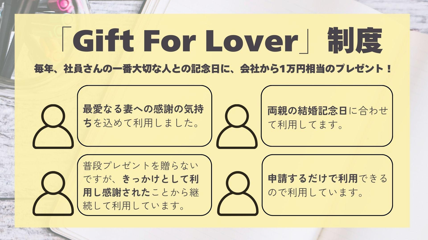 ※2025年6月より、「Gift For Lover」制度は、給与水準の引き上げに伴い廃止し、現金支給によるシンプルな制度へと移行しております。