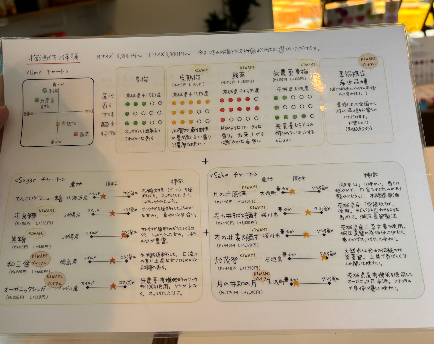 梅の種類や入れる砂糖、お酒が選べるので、自分だけの梅酒が作れるのが楽しかったです。