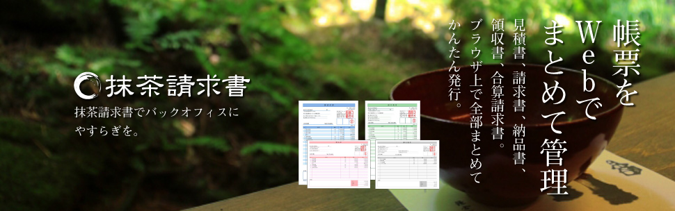 請求書、見積書、納品書、領収書、の帳票と送付状、合計請求書をWebブラウザ上で作成することができます。