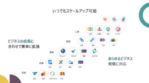 - スケーラビリティ: 企業の成長に伴い、必要な機能やモジュールを段階的に追加可能。