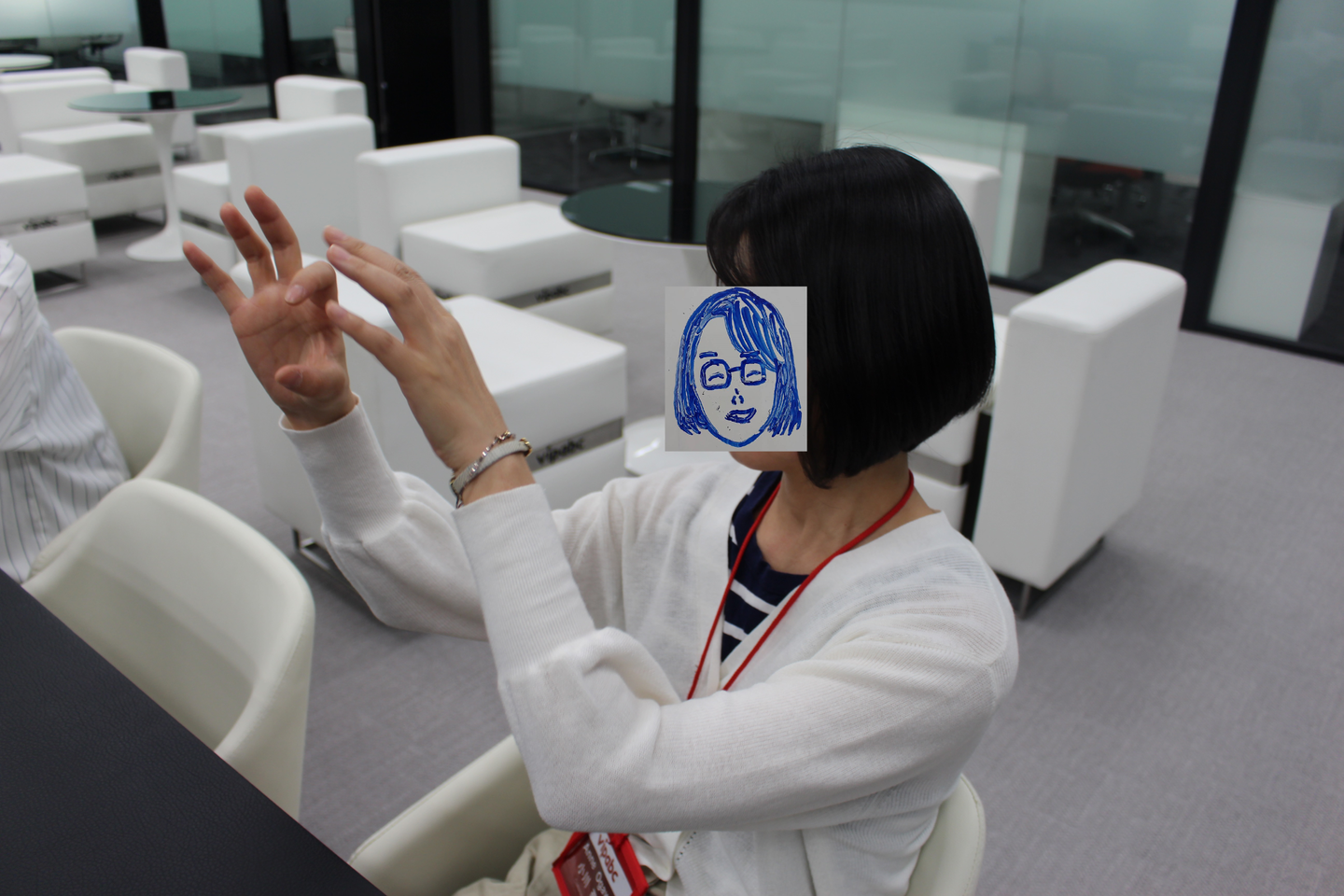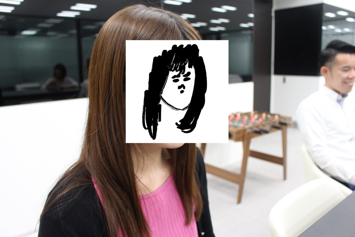 (入社前のワクワク感を語るChristine ※似顔絵は当社画伯による作品であり、本人とは全く似ていません)