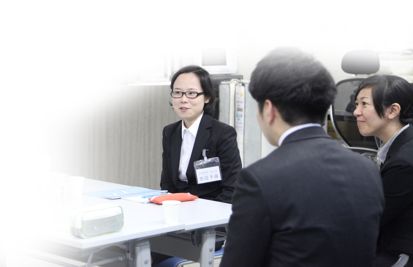 合説では小林さんや西岡さんの話以上に人柄に惹かれ、個別企業説明会では社長の人柄に惹かれ、気がついたら入社していました。