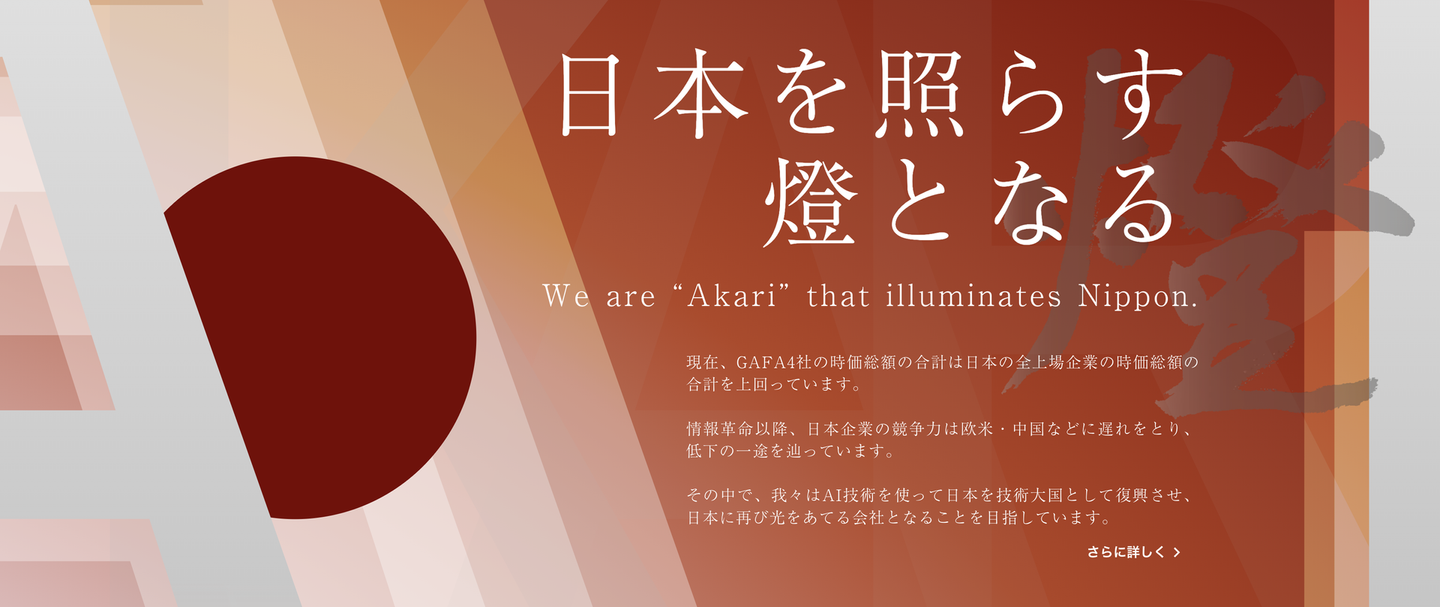 ↓燈のHP(https://akariinc.co.jp/)のトップビュー