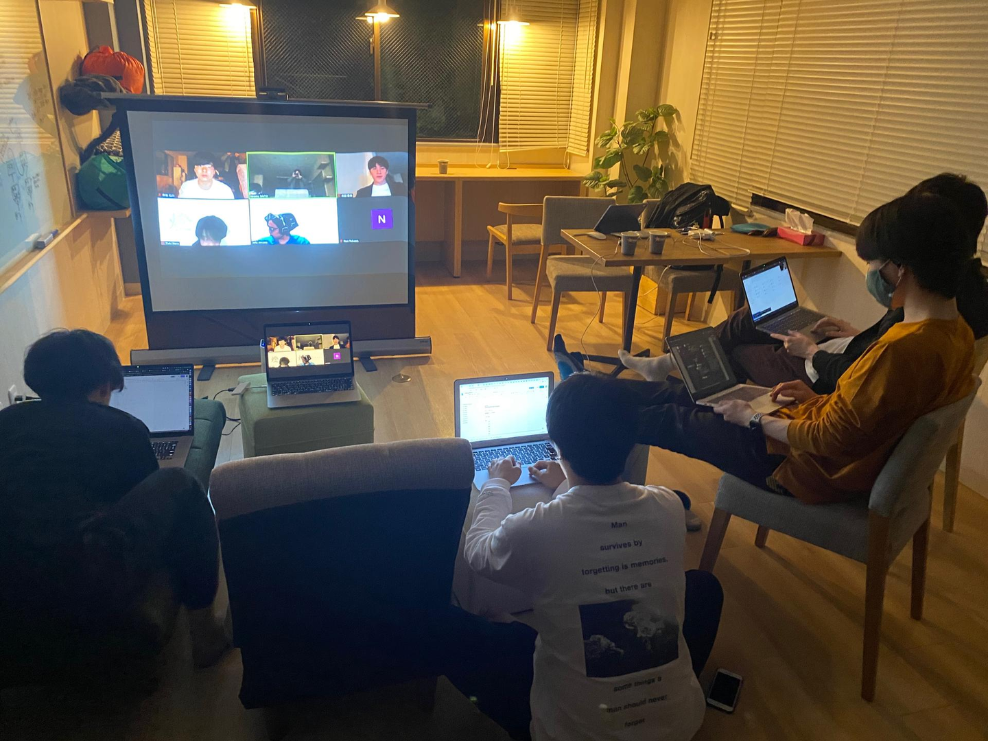 ↓2021年4月(創業2ヶ月後)の全体会の写真