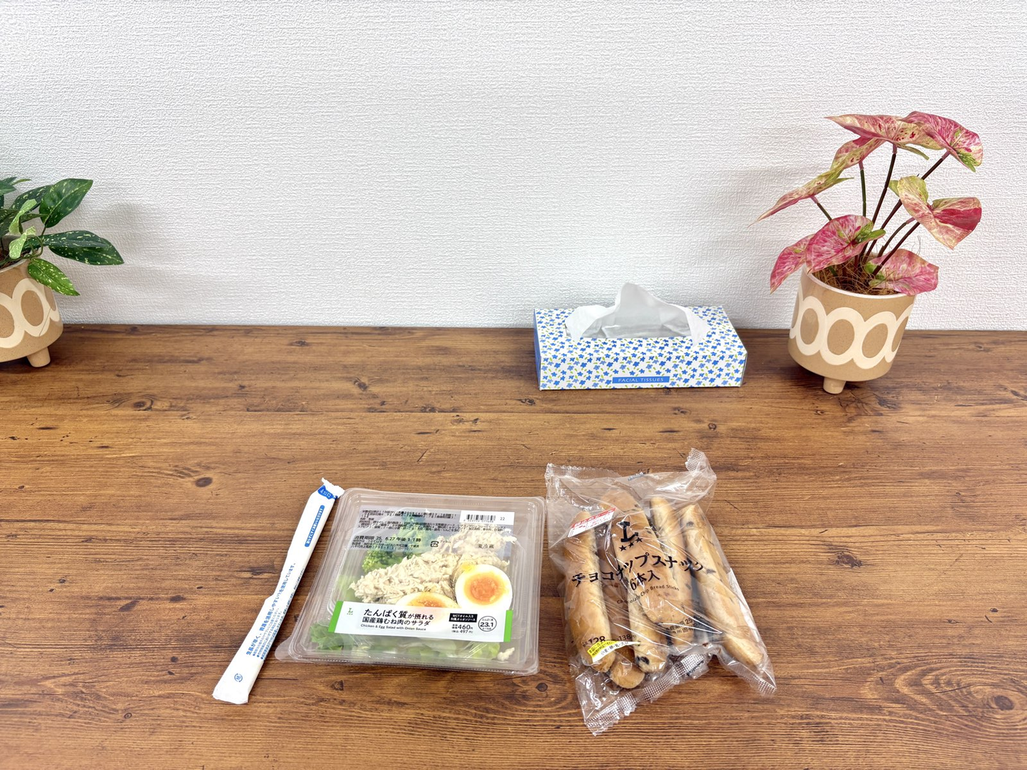 私は極めて意識が高い人間なので、本日はローソンで買ったサラダとパンをいただいています。