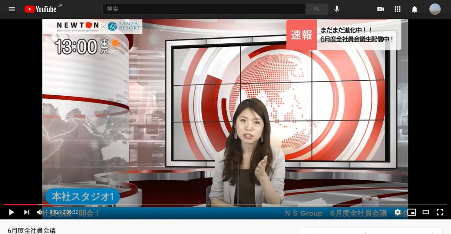 また、開始から丸1年が経過した2021年6月の全社員会議では、Youtubeでの配信となり、司会の様子はここまで進化しました。