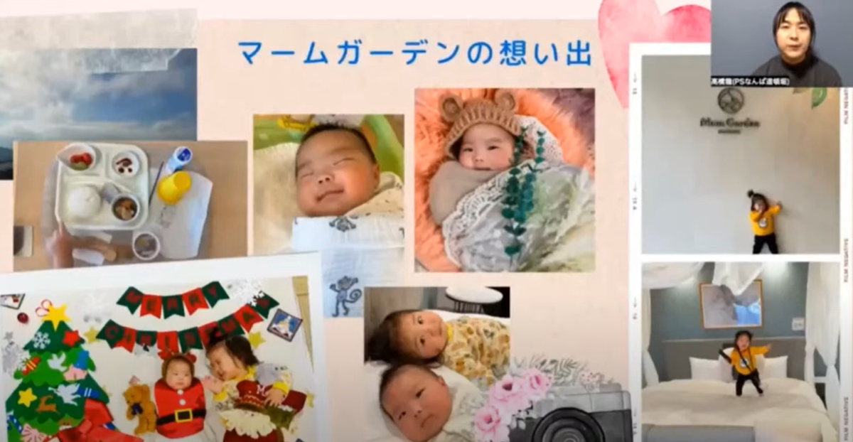 髙橋さんの発表テーマは入社半年で男性育休を4ヵ月取得し、産後ケアホテル「マームガーデン葉山」も利用した話。