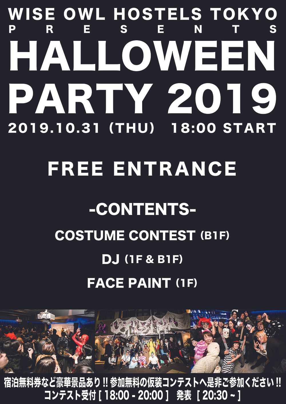 HALLOWEEN PARTY 2019 at WISE OWL HOSTELS TOKYO.