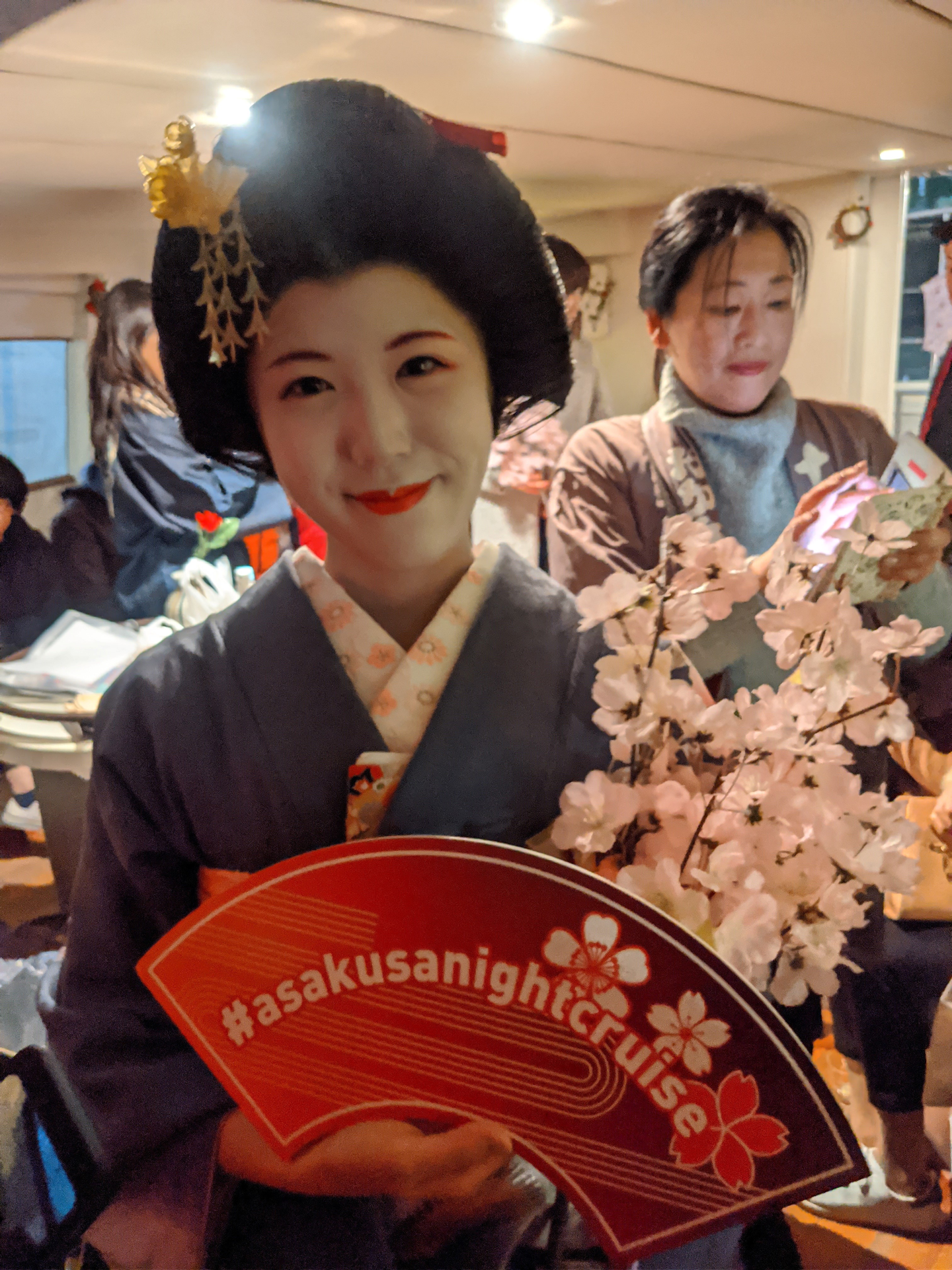 The tour program is called, EDO-IKI-NIGHT tour, which is a boat tour on a cruise boat, with some complimentary drinks and awesome performance from Furisode Girls, performers who wear Japanese traditional cloths and dance.