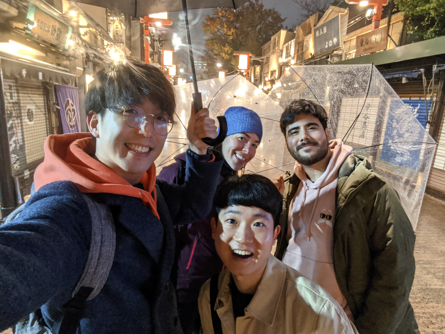 Our staff and the guests had wonderful dinner and shared their thoughts, experiences, and became friends. So they decided to have a walk through raining Sensoji and took marvelous pictures.