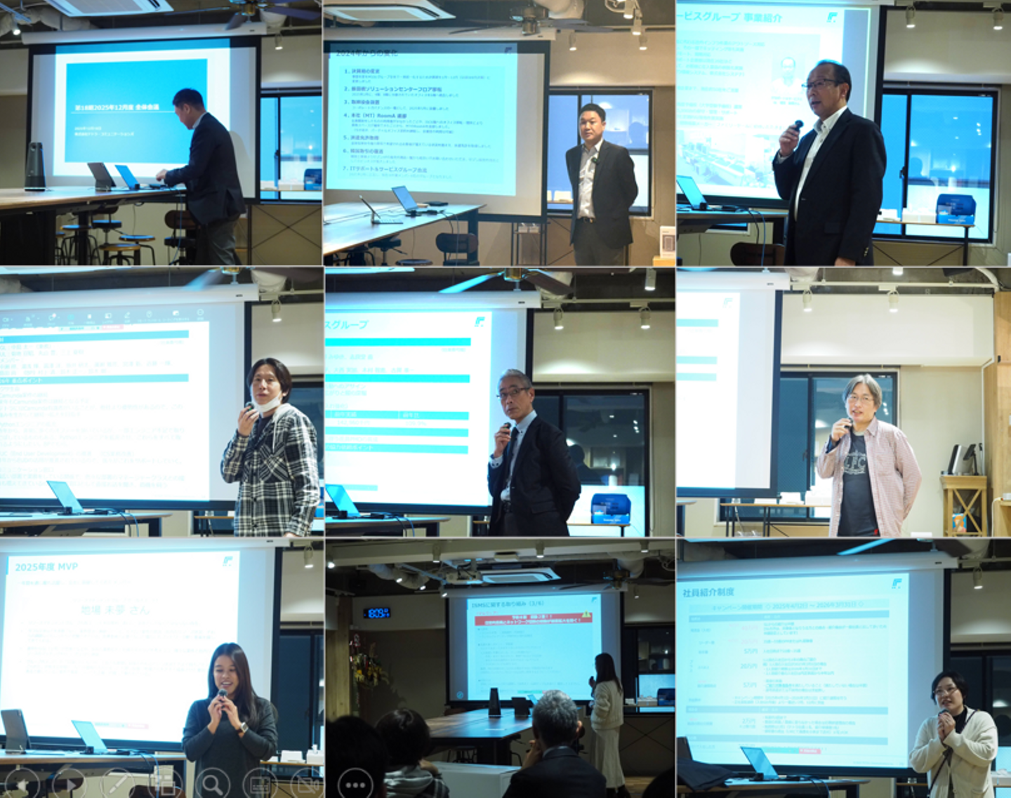 全体会議は、今期の振り返りや来期の目標・抱負の他、テトラメンバーとして大切にしたいこと・行動指針などを全員で共有します。表彰もあります!