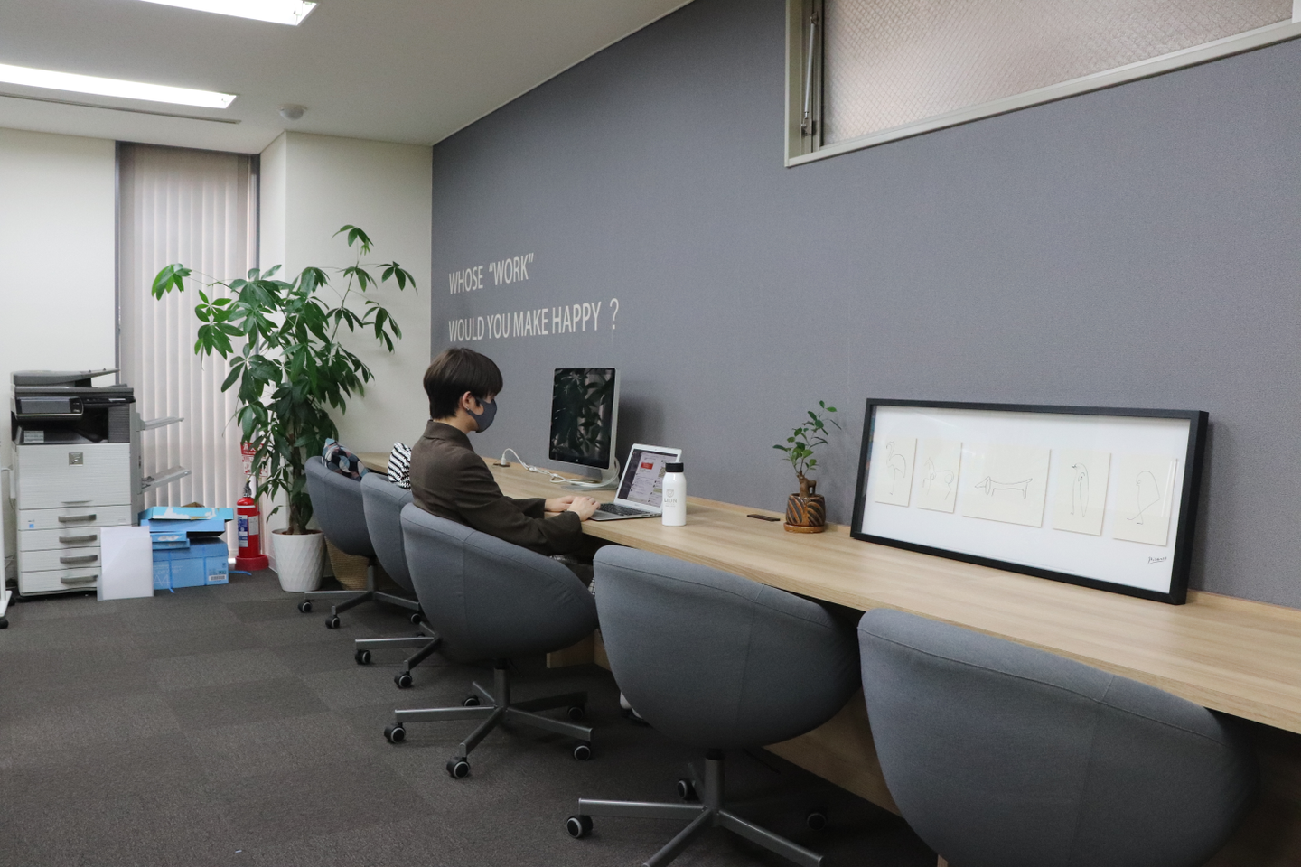 オフィス内は『集中する場所』、『リラックスする場所』、『コミュニケーションをとる場所』など各所に社長の”働きやすさ”への工夫が見られます。