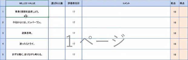 WILLCO VALUEは全部で10項目あり、選ばれた分だけ自分の点数になります。
