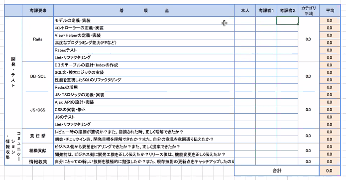この評価項目は、エンジニアもセールスチームも共通の項目です。