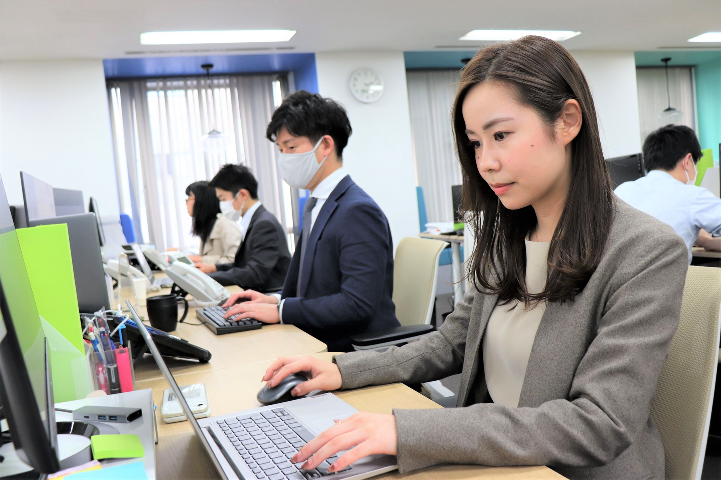 現在は一人で対応していますが、まだ勉強中の分野の業界の面接のときには、先輩社員の横で議事録をとりつつ勉強することもあります。