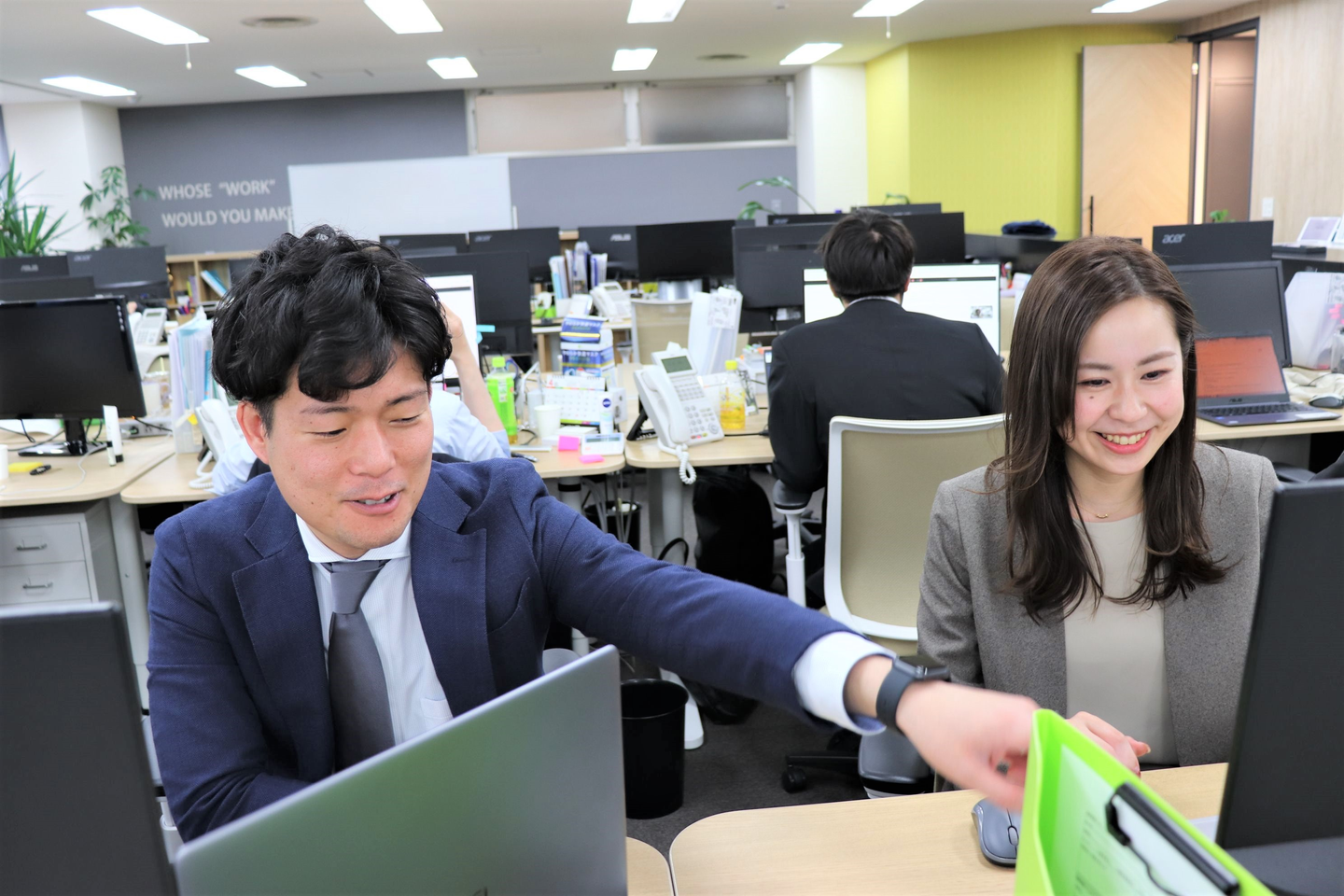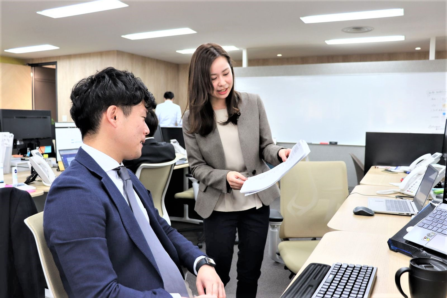 新入社員1人につき1人の担当上司が横について、会員や事務所への電話を聞いていてくれたり、アドバイスをくれるのでとても安心です。