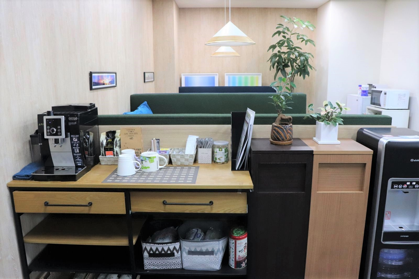 ドリンクコーナーでお水やコーヒーを飲んでリフレッシュしています。