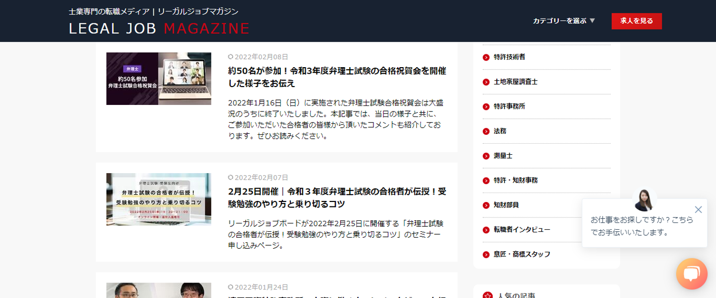弊社の運営している「LEGAL JOB BOARD」は士業に特化した転職サービスです。