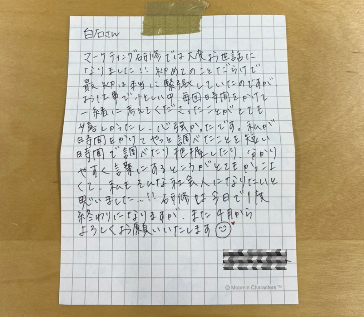 研修最終日の夜にあった歓迎会&お疲れ様会に私用で参加できなかったのですが、週明けに出社すると素敵なメッセージとお菓子が机の上にあって、とても感動しちゃいました!