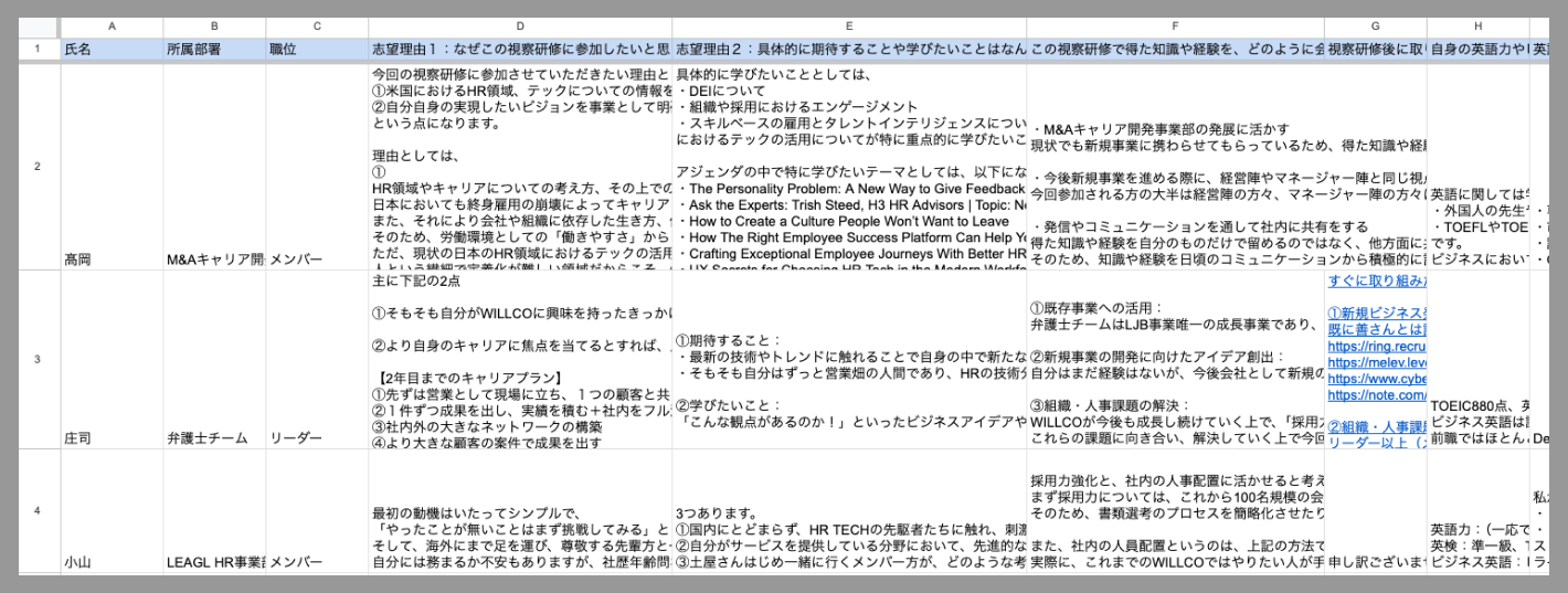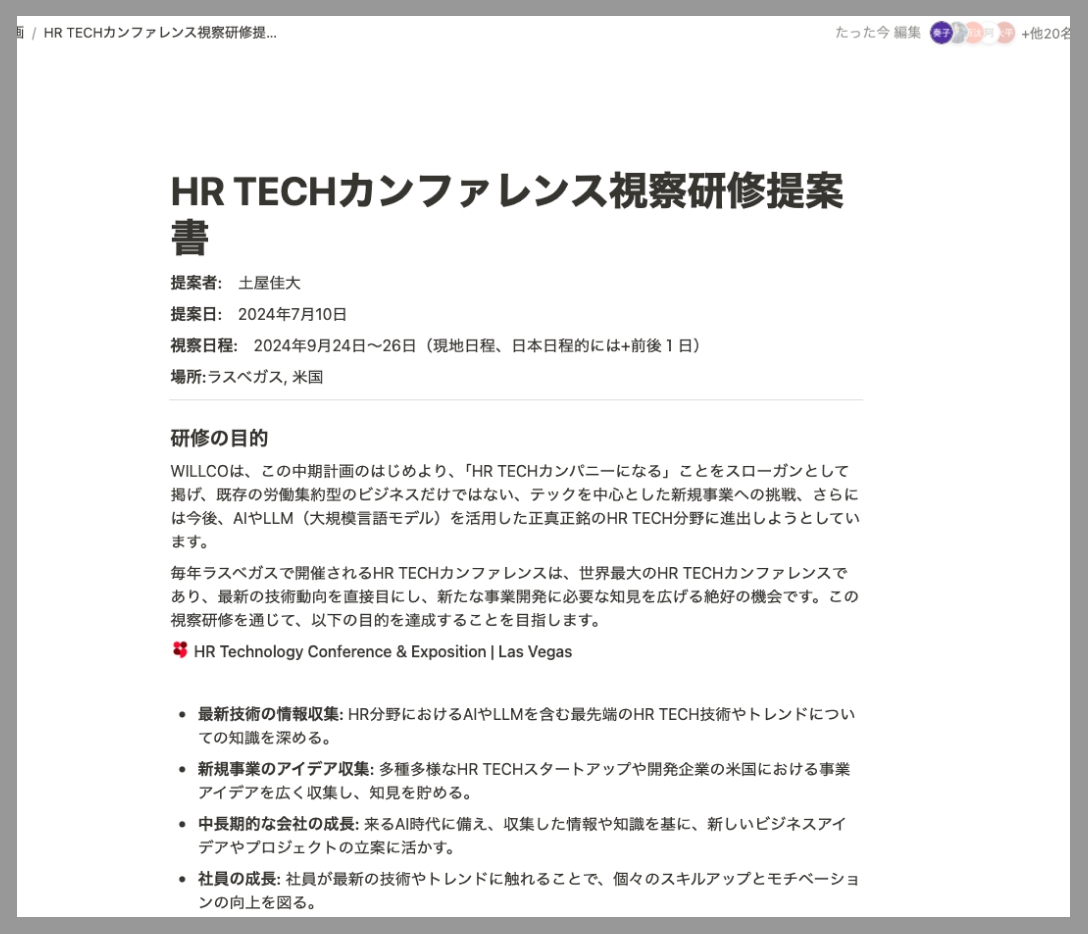 主に2点あります。1点目は、この研修が、セールスリーダーとして今後の事業や組織を牽引する立場の私にとって、これ以上ない成長のチャンスだと考えたからです。WILLCOがテックを中心とした新規事業への挑戦、さらにはAIやLLM(大規模言語モデル)を活用した正真正銘のHR Tech分野に進出する上で、この研修は必須だと感じました。