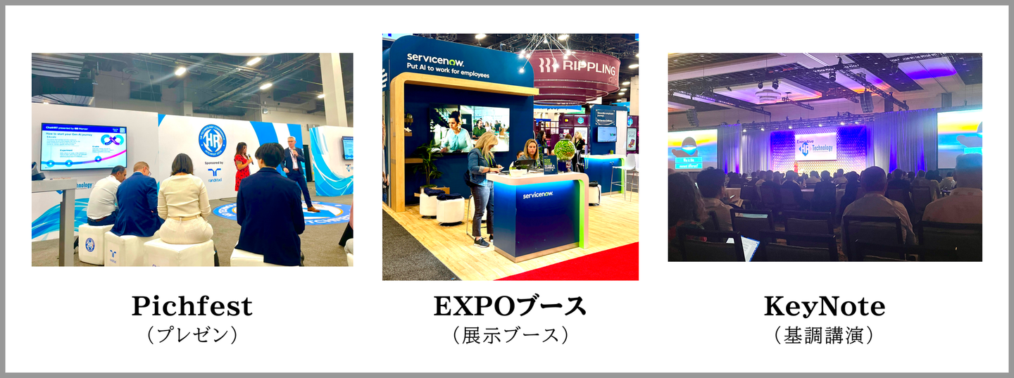 私たちが参加したHR Tech Conference2024は、2024年9月24日〜26日までアメリカ・ラスベガスで開催された世界最大規模のHR Techイベントで、EXPブース・ピッチフェス・キーノートの3つのプログラムで構成されています。