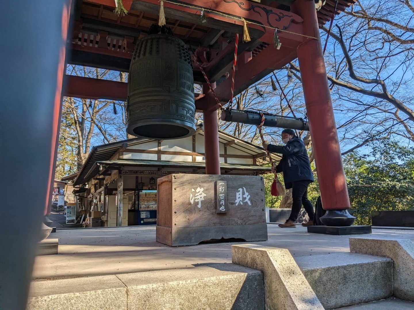 大きな鐘をつくことにもチャレンジしました!!1発100円ww
