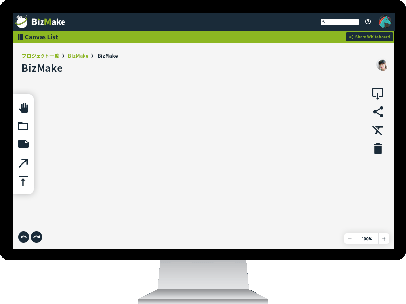 また、当社ではビジネス思考を整理・共有できるSaaS「BizMake」を提供しており、その中で研修サービスを展開しています。