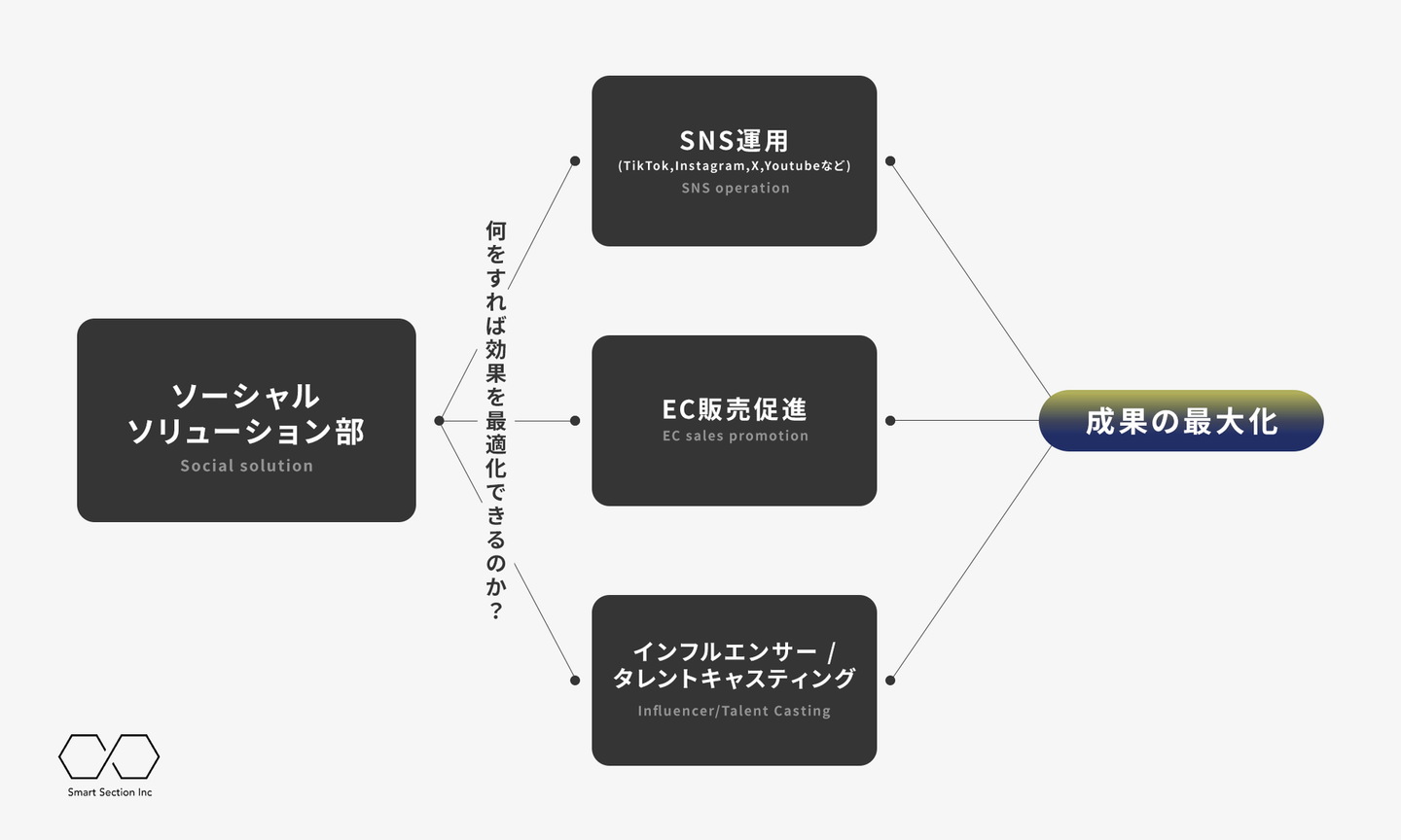スマートセクションは、『SNSマーケティング』に特化した独自モデル「スマートハック」という事業を展開しています。