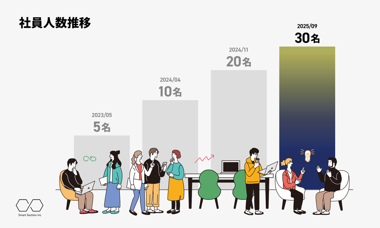本記事では、スマートセクションの「人 × ビジネス」の側面から、なぜこの組織が短期間で市場を席巻できたのか、データや数字も交えてご紹介します!